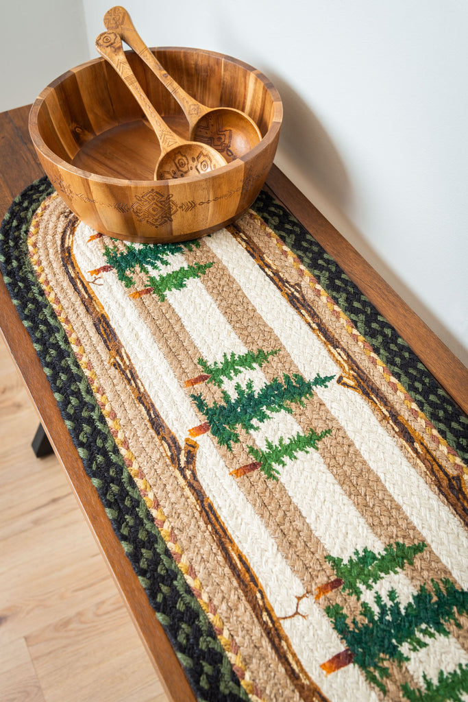 Hand Stenciled Oval Table Runner with Tall Timbers Design
