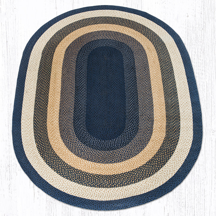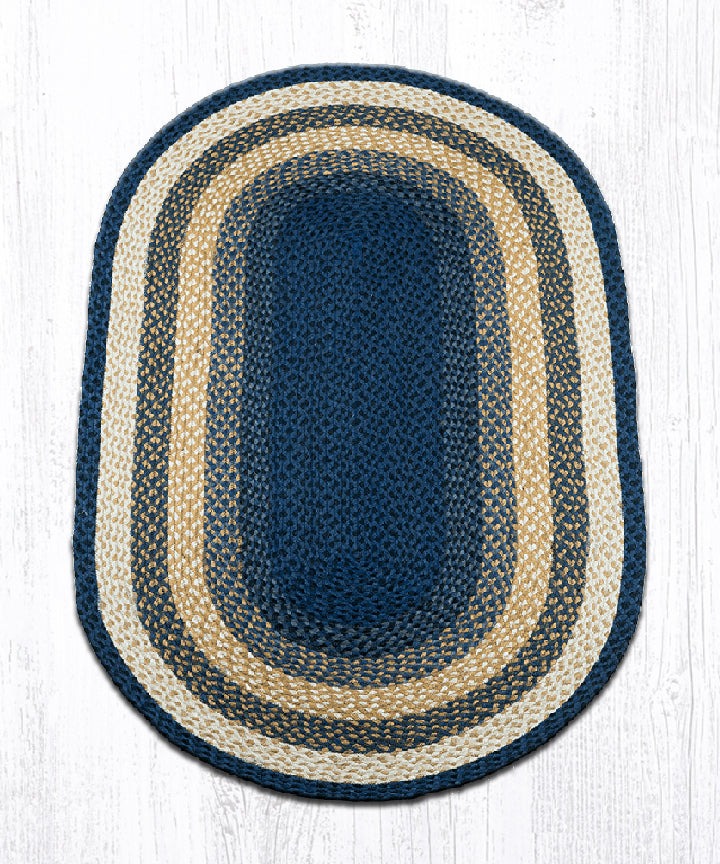 C-079 Light & Dark Blue/Mustard Braided Rug