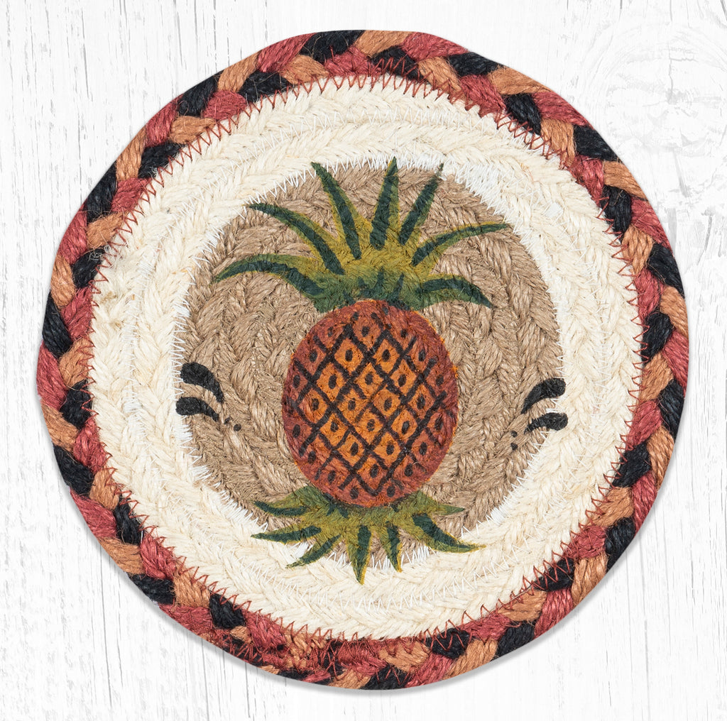 Round Hand Stenciled Coaster with Pineapple Design
