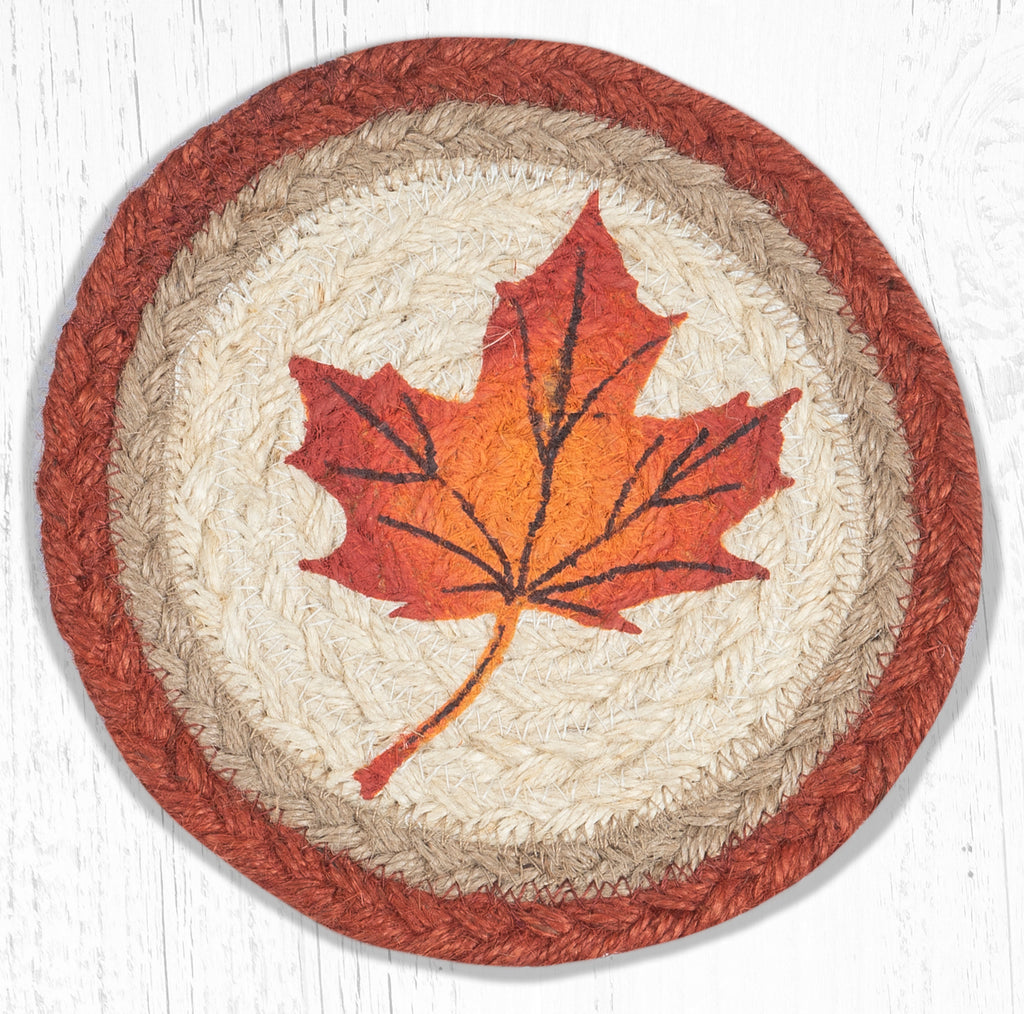 Round Hand Stenciled Coaster with Maple Leaf Design