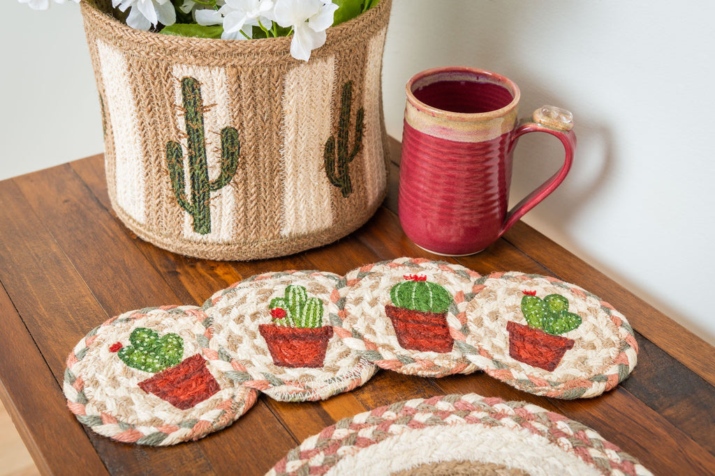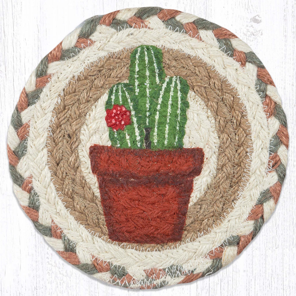 Round Hand Stenciled Coaster with Cacti 2 Design