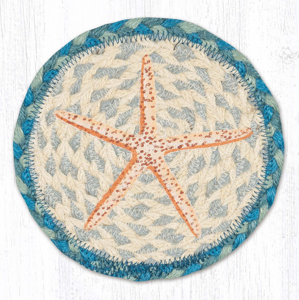 Round Hand Stenciled Coaster with Pencil Starfish Design