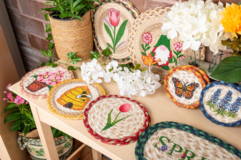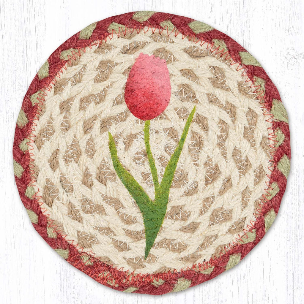 Round Hand Stenciled Coaster with Tulips Design