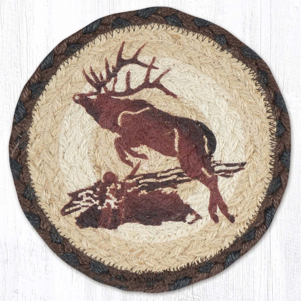 Round Hand Stenciled Coaster with Jumping Elk Design