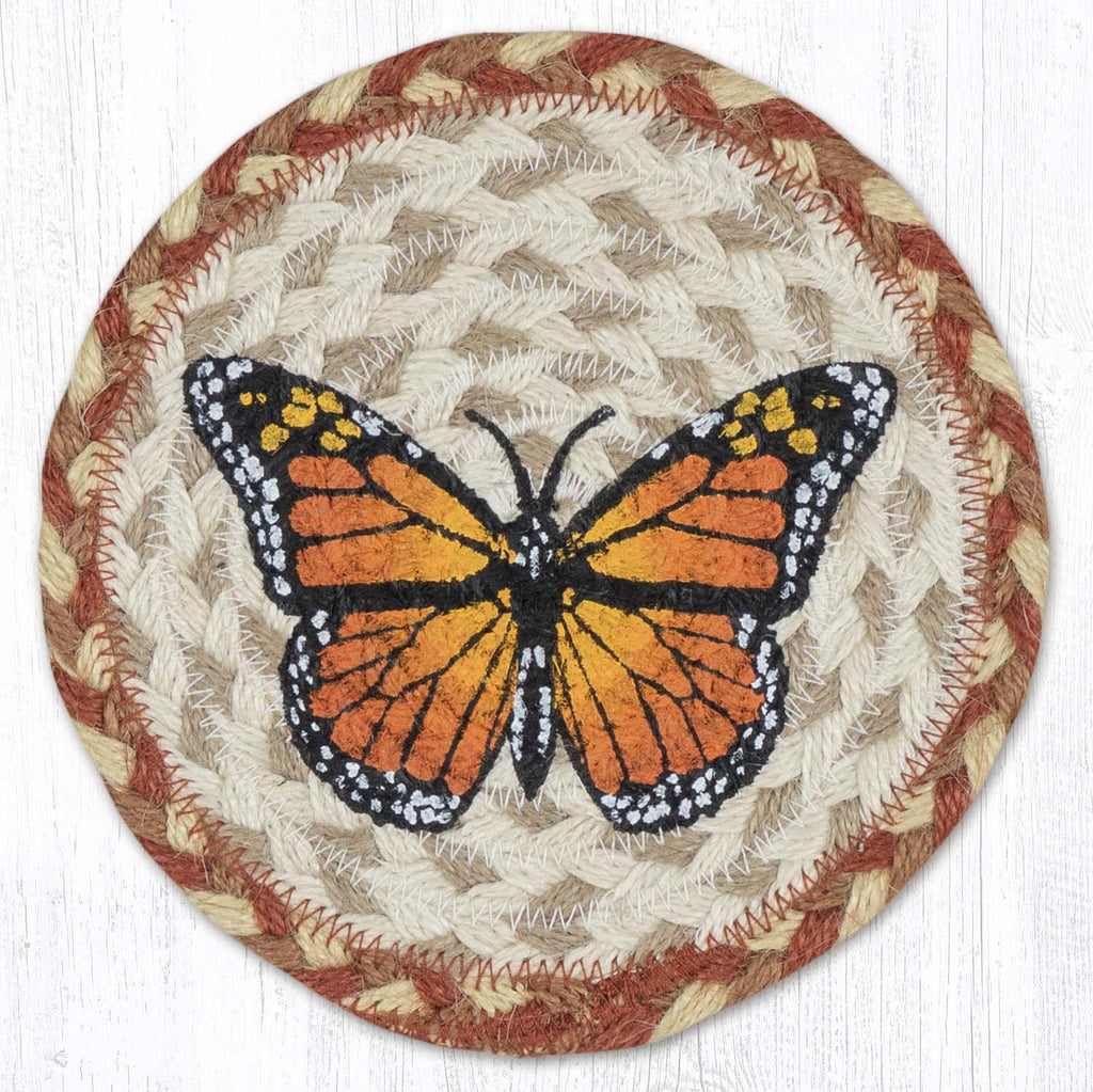 Round Hand Stenciled Coaster with Monarch Design