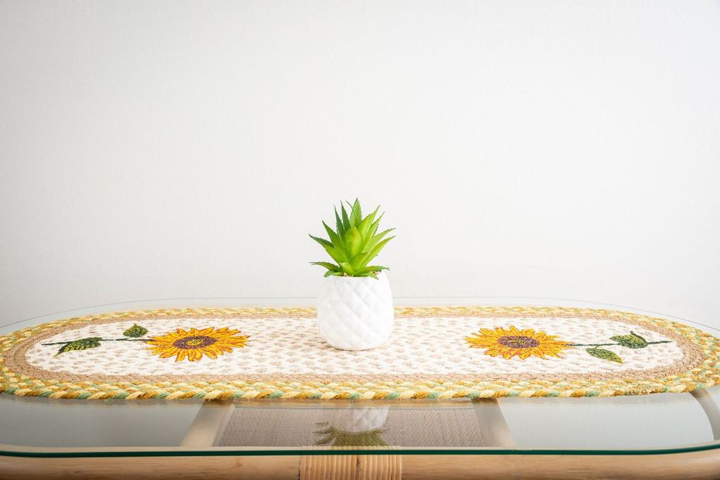 Hand Stenciled Oval Table Runner with Tall Sunflower Design