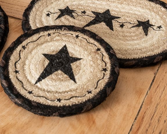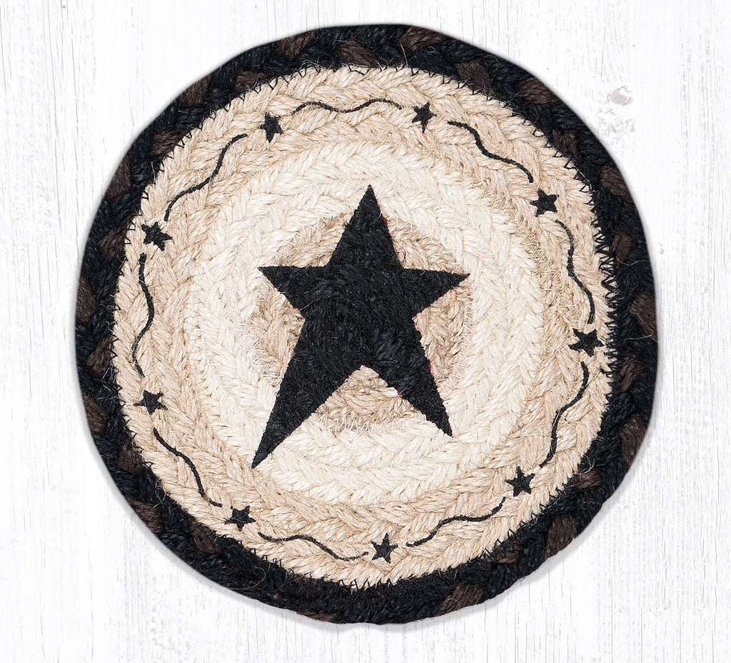 Round Hand Stenciled Coaster with Primitive Star Black Design