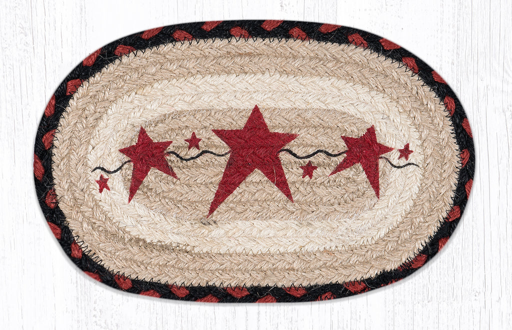 Hand Stenciled Oval Swatch with Primitive Star Burgundy Design