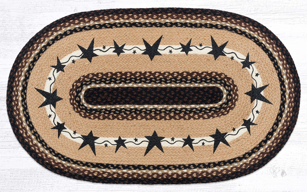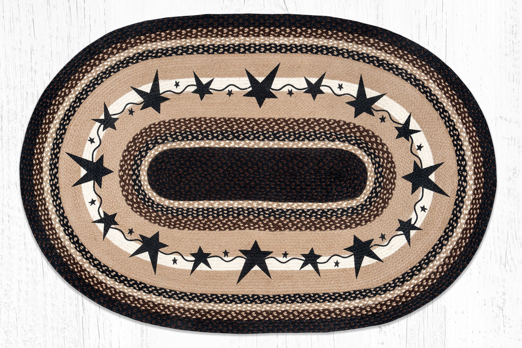 20"x30" Hand Stenciled Oval Patch Braided Rug