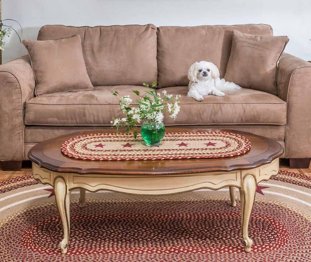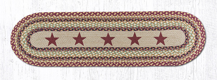 Hand Stenciled Oval Table Runner with Burgundy Stars Design