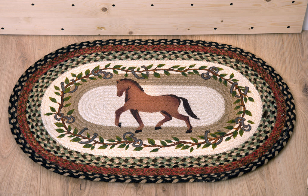 20"x30" Hand Stenciled Oval Patch Braided Rug