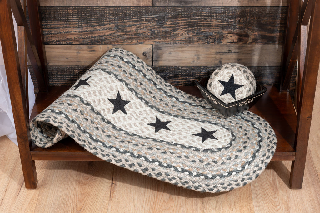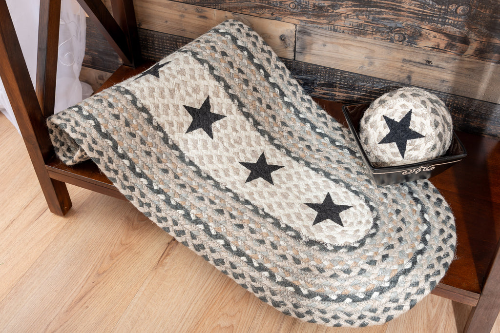 Hand Stenciled Oval Table Runner with Black Stars Design