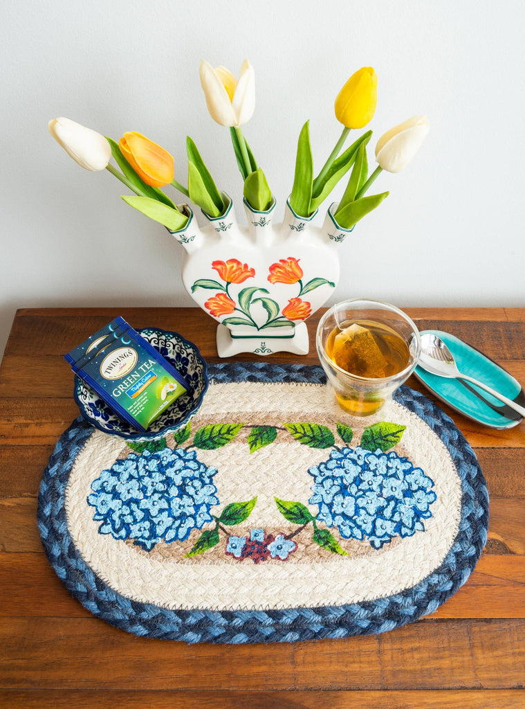 Hand Stenciled Oval Swatch with Blue Hydrangea Design