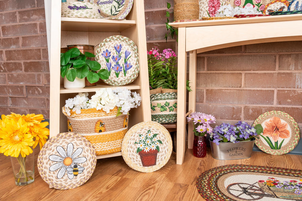 10" Round Printed Trivet with Daisy Clay Pot Design
