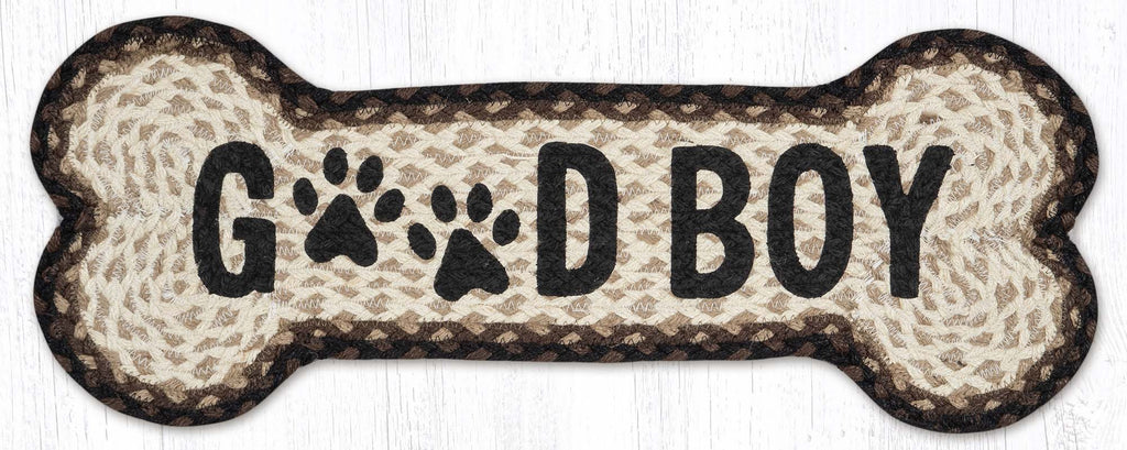 Hand Stenciled Dog Bone Rug with Good Boy Design