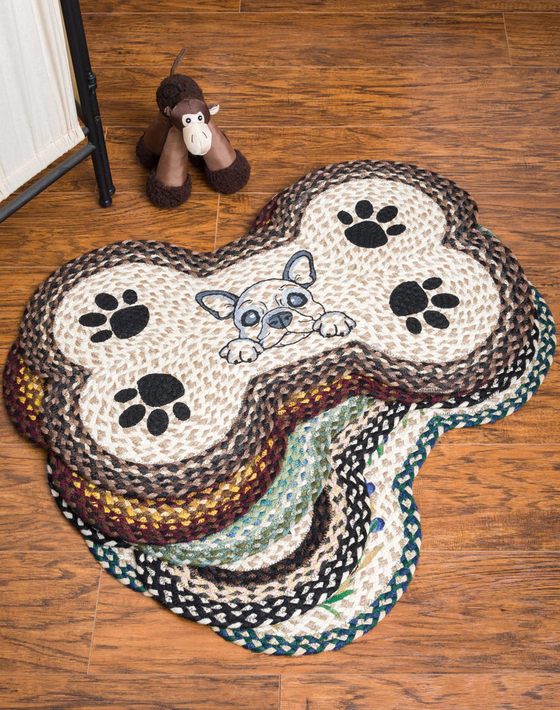 Hand Stenciled Dog Bone Rug with Hungry Dog Design