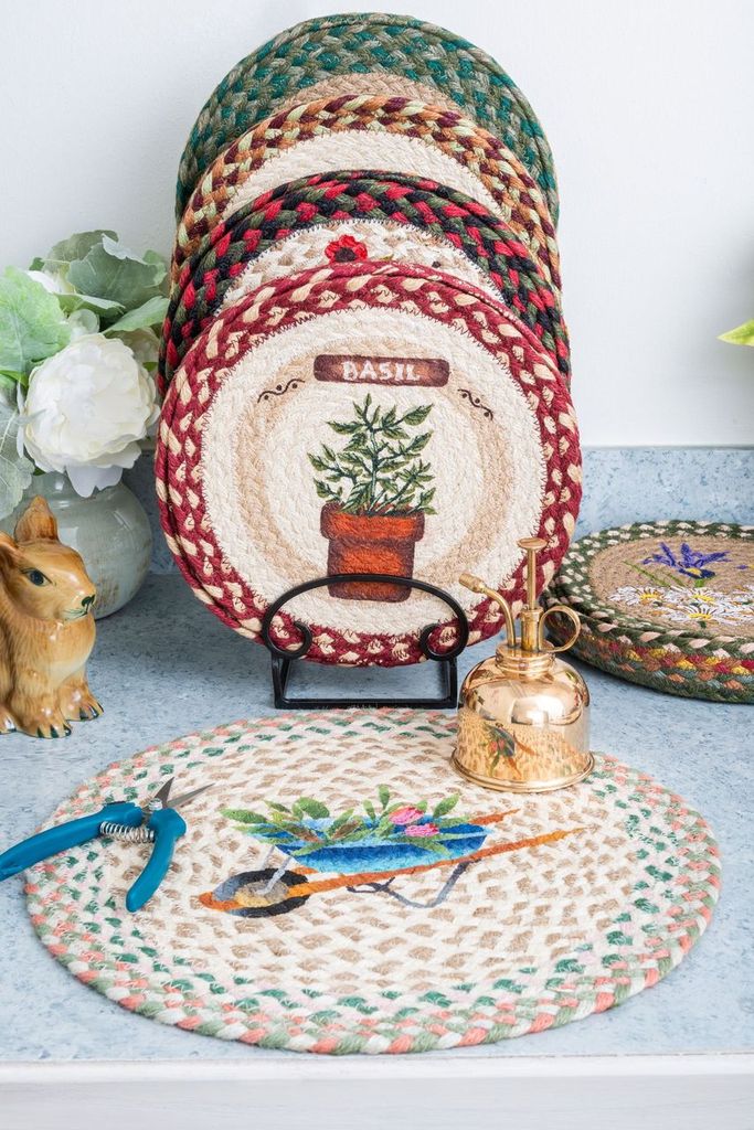 Hand Stenciled Round Placemat with Tulips Wheelbarrow Design