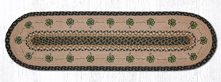 Hand Stenciled Oval Table Runner with Shamrock Design