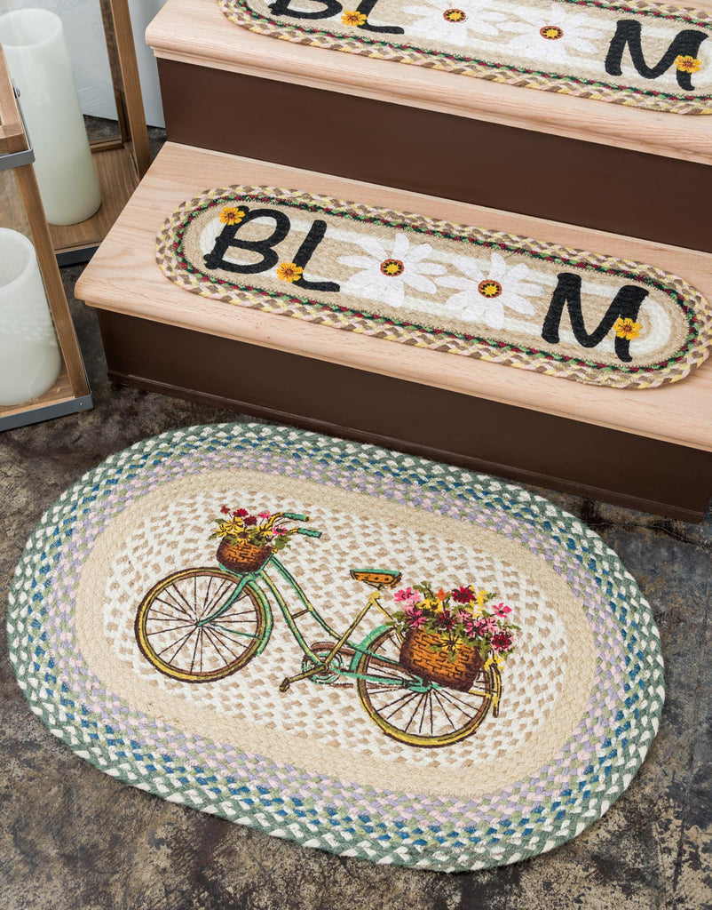 20"x30" Hand Stenciled Oval Patch Braided Rug
