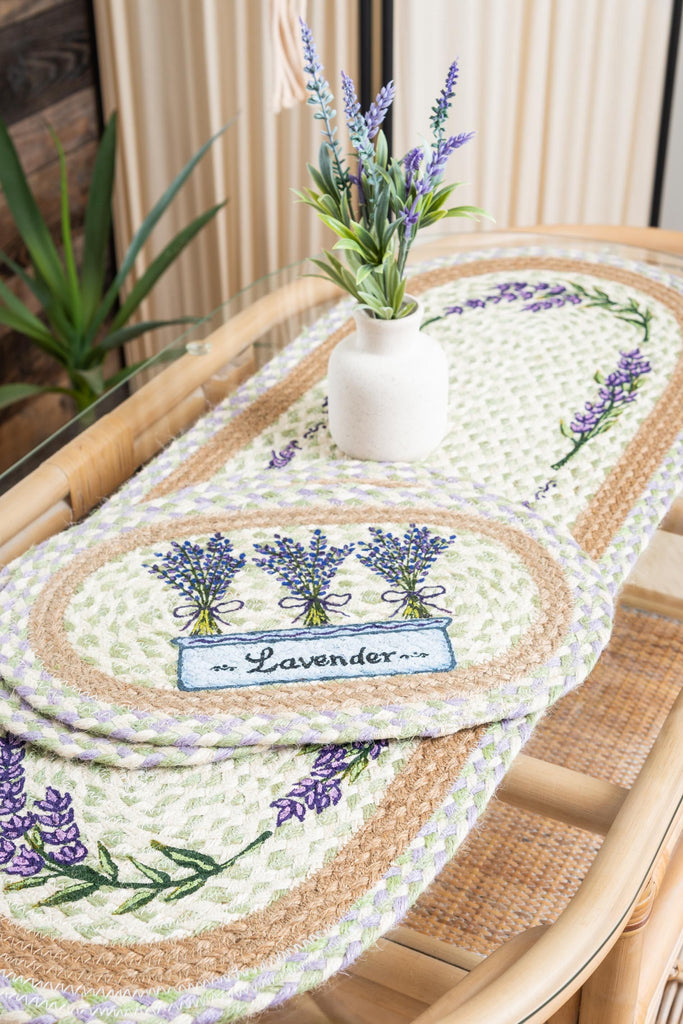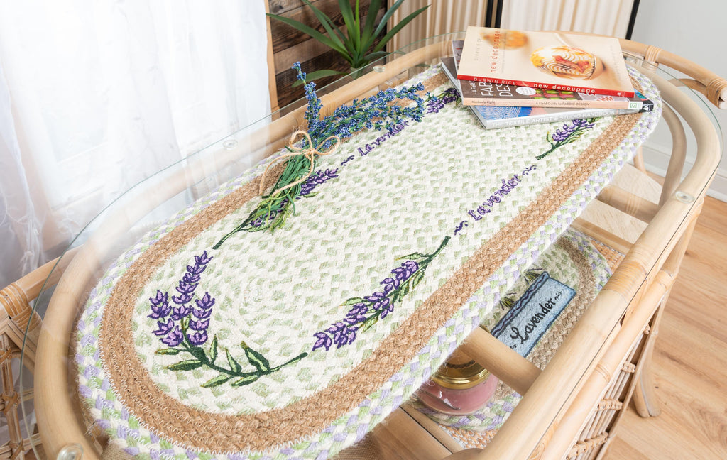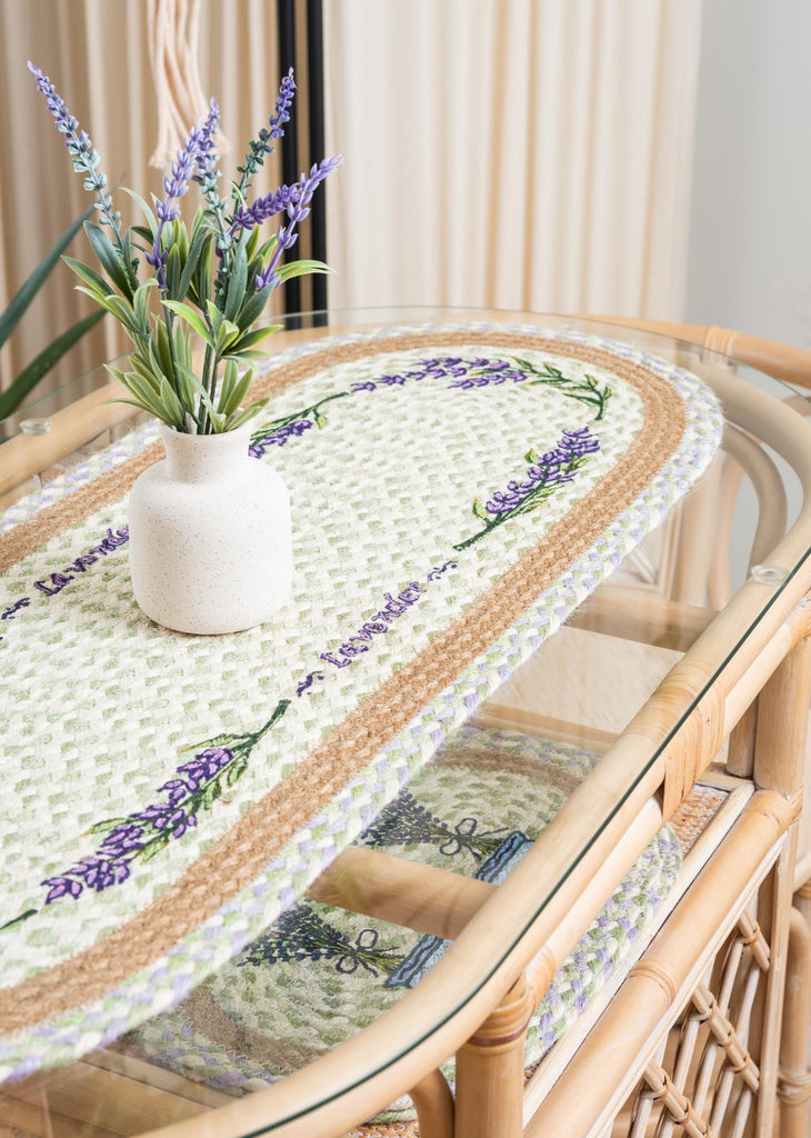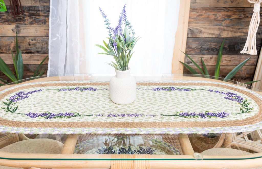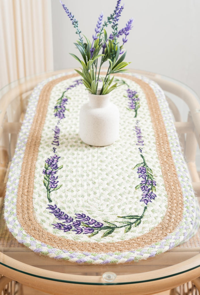 Hand Stenciled Oval Table Runner with Lavender Design