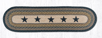Hand Stenciled Oval Table Runner with Black Stars Design