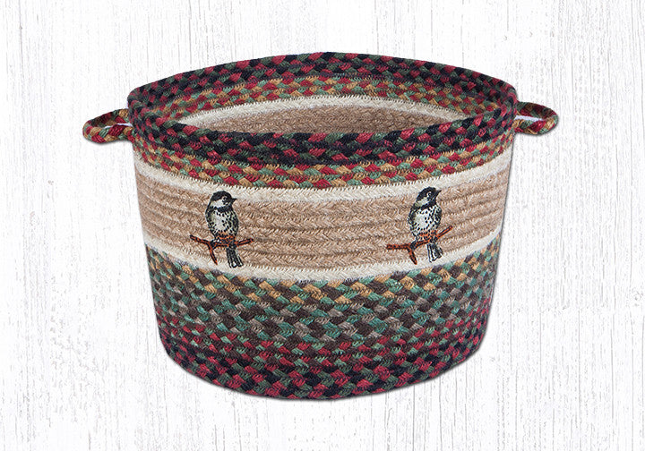 Jute Braided Utility Baskets With Chickadee Design