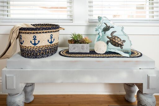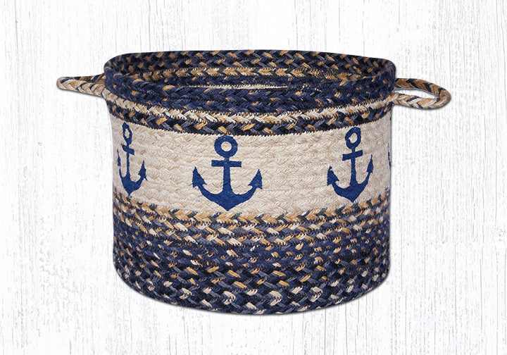 Jute Braided Craft-Spun Utility Baskets With Anchor Design
