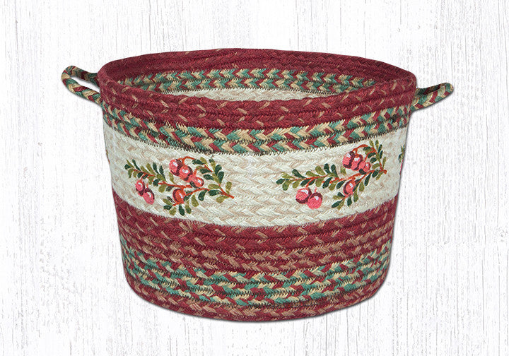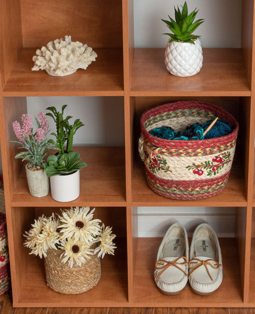 Jute Braided Craft-Spun Utility Baskets With Cranberry Design