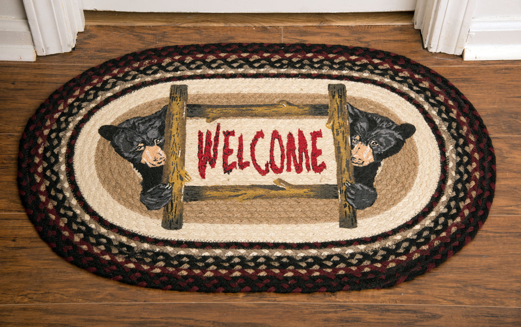 20"x30" Hand Stenciled Oval Patch Braided Rug