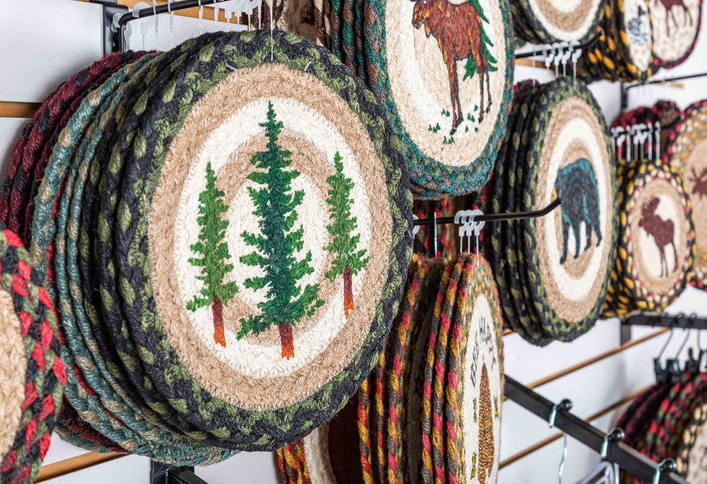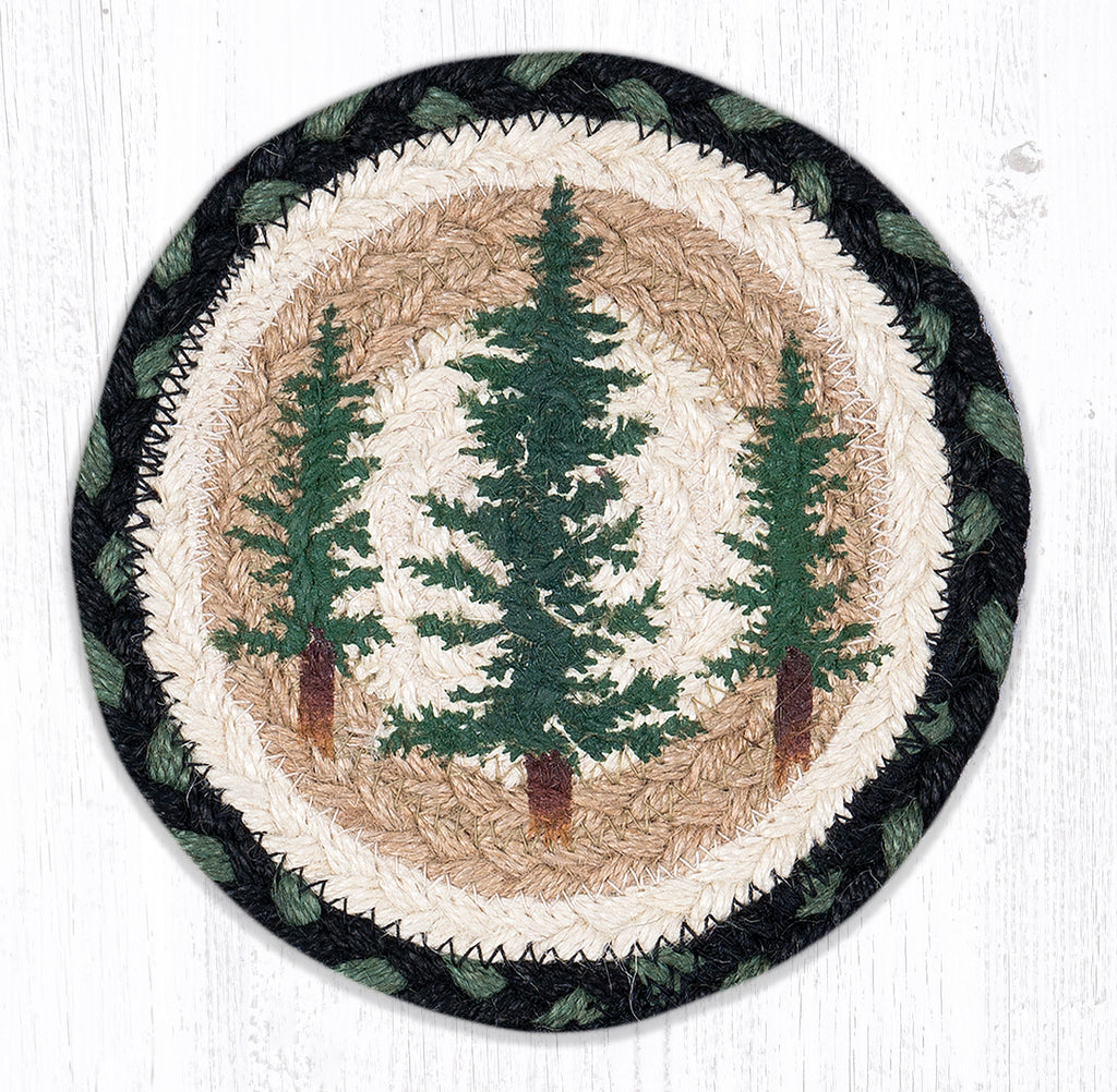 Round Hand Stenciled Coaster with Tall Timbers Design